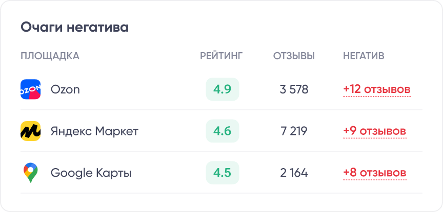 Мы работаем с 20+ популярными площадками. Везде, где есть Ваш продукт и там, где клиенты о нём говорят.